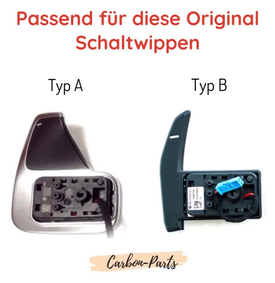 Die Schaltwippen sind aus hochwertigem und exklusivem Echt-Carbon welches in mehreren Schichten mit Klarlack versiegelt wurde.