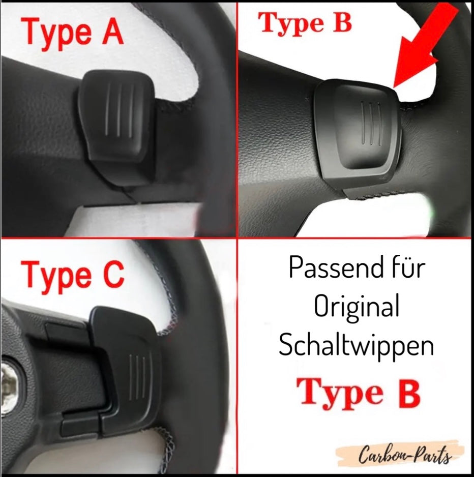 Die Schaltwippen passen plug-and-play und werden einfach von hinten auf die originalen Schaltwippen aufgeklebt.