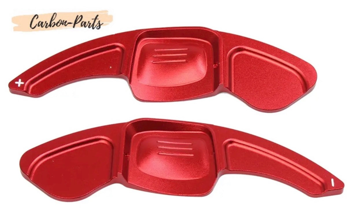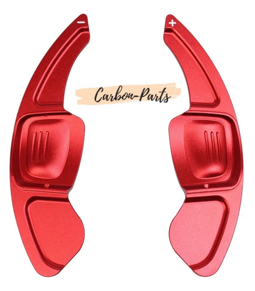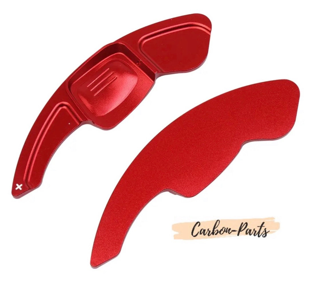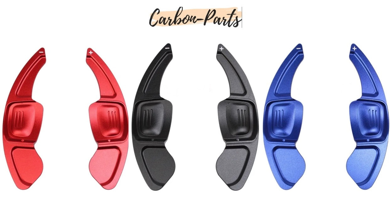 Die Schaltwippen sind CNC-gefräst aus Aluminium und in Rot, Schwarz oder Blau eloxiert.